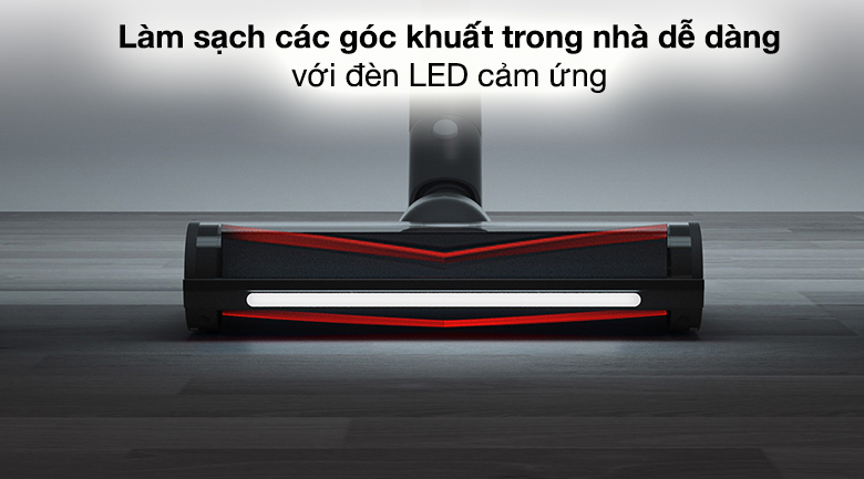 Đèn nằm ở mặt trước máng hút, khi di chuyển vào khu vực tối đèn LED sẽ tự phát sáng, cho bạn nhìn rõ và làm sạch các góc này tiện lợi. Thiết bị còn có đèn cảnh báo lỗi cho bạn nhận biết và xử lý khi lỗi phát sinh dễ dàng.