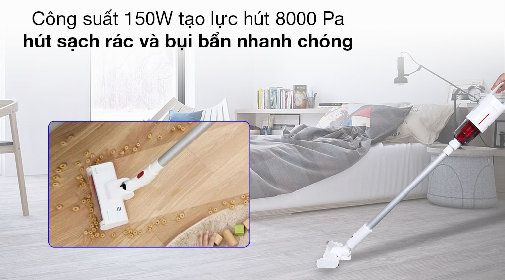 Máy hút bụi Deerma công suất hoạt động 150W mạnh mẽ, nhưng vẫn khá yên tĩnh với độ ồn cao nhất 75 dB