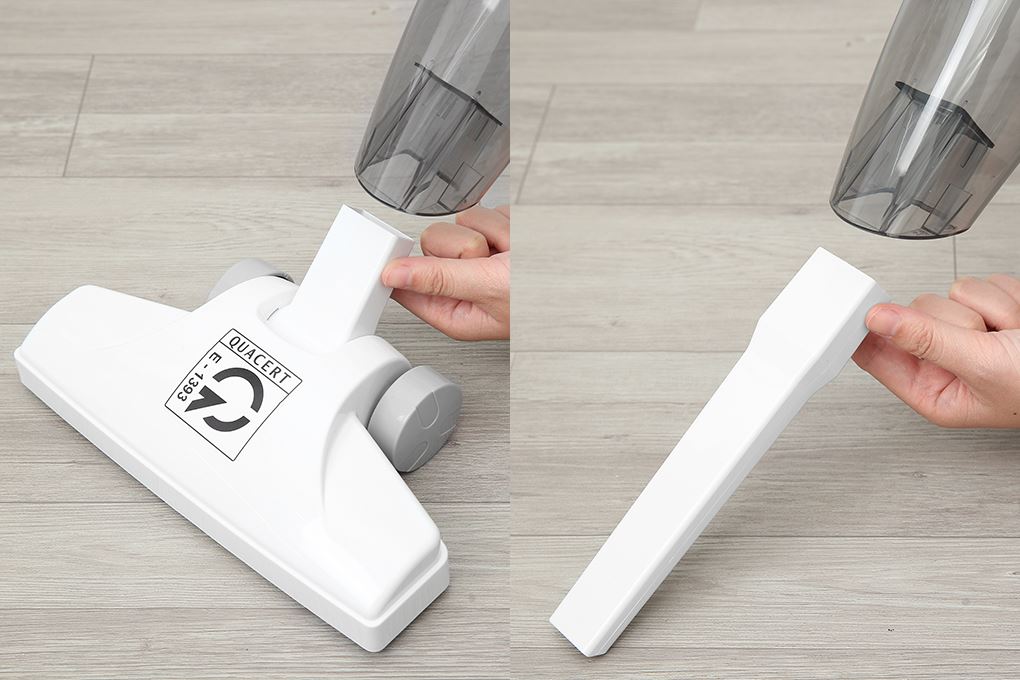 Sản phẩm đi kèm hai đầu hút linh hoạt để xử lý nhiều khu vực khác nhau. Đầu hút sàn chuyên dùng để làm sạch các bề mặt lớn như sàn gỗ, gạch men, thảm mỏng. Trong khi đó, đầu hút khe giúp người dùng tiếp cận các vị trí hẹp và khó tiếp cận như rãnh cửa, góc tường, khe ghế sofa hoặc gầm tủ. Sự kết hợp này mang lại tính linh hoạt cao trong việc làm sạch cả diện tích rộng lẫn những chi tiết nhỏ, đảm bảo bụi bẩn không bị bỏ sót.