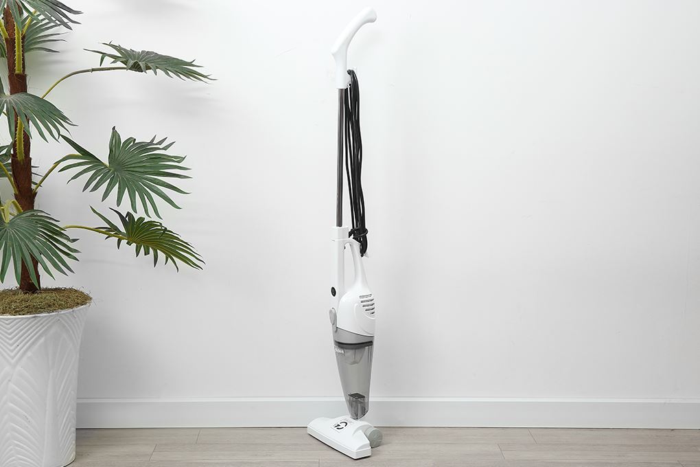 - Máy hút bụi có kiểu dáng thuôn dài, thiết kế 2 trong 1 nhỏ gọn với tông màu xám trắng tạo cảm giác hiện đại và chắc chắn. Máy có khối lượng khoảng 1.8 kg dễ cầm nắm, phù hợp với cả người lớn tuổi hoặc người có tay yếu.