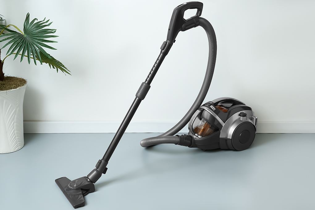 Thân máy chắc chắn, có tay cầm bố trí phía trên giúp việc nhấc và di chuyển giữa các khu vực trong nhà trở nên thuận tiện. Bánh xe kích thước lớn hỗ trợ kéo máy nhẹ nhàng, hạn chế vướng víu khi di chuyển trên sàn gạch hoặc sàn gỗ.