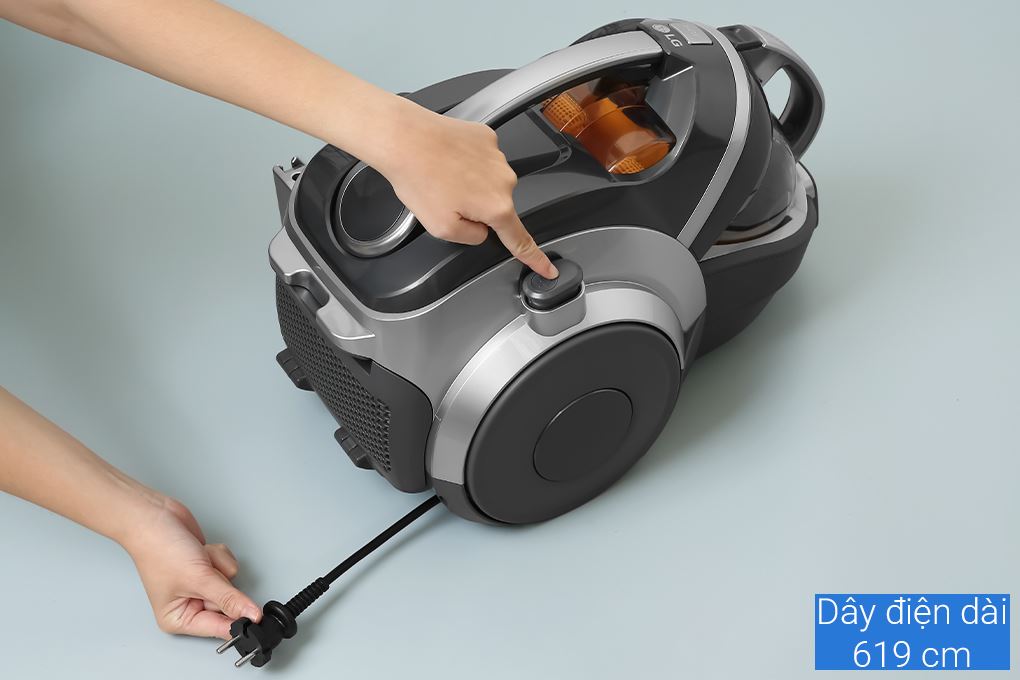 Dây điện dài khoảng 6.19m có khả năng tự cuốn, giúp không gian luôn gọn gàng sau khi hoàn tất việc vệ sinh.