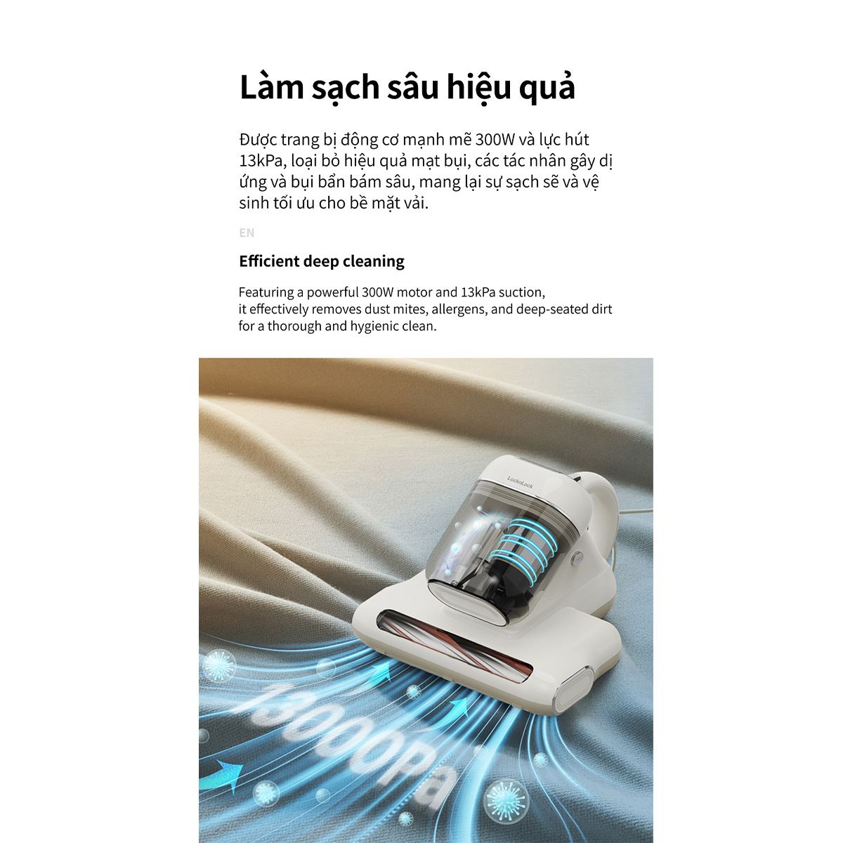 Lock&Lock ENV818IVY được trang bị động cơ mạnh mẽ 300W, lực hút 13 kPa, đảm bảo khả năng làm sạch sâu vượt trội. Không chỉ dừng lại ở việc hút bụi bề mặt, máy còn tích hợp công nghệ vỗ đập tốc độ cao 2800 - 3000 vòng/phút, tạo ra lực rung mạnh mẽ giúp đánh bật mọi mạt bụi, bụi bẩn, vi khuẩn ẩn sâu trong các lớp vải dày như đệm, sofa, thảm. Sự kết hợp giữa lực hút và lực vỗ đập mang lại hiệu quả làm sạch tối ưu, trả lại sự tinh tươm cho không gian sống của bạn.