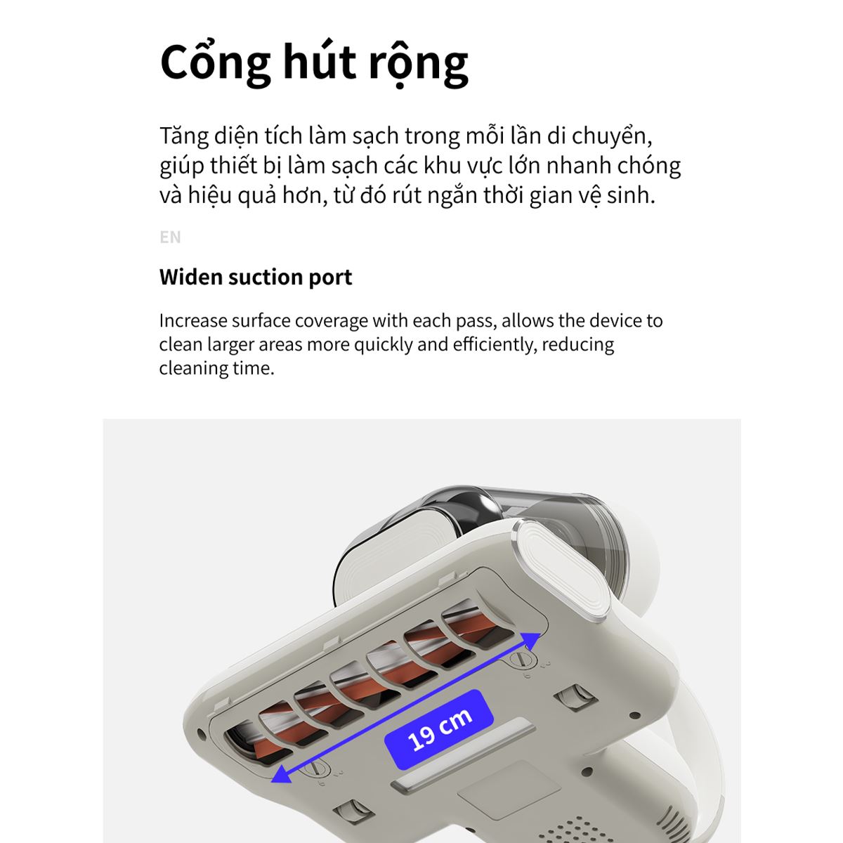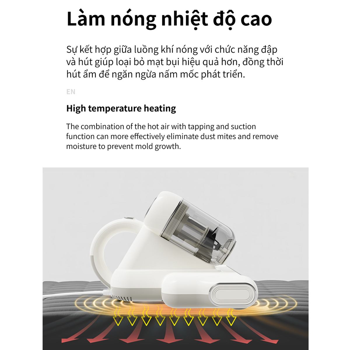 Sản phẩm được tích hợp tính năng làm nóng nhiệt độ cao kết hợp với luồng khí nóng và chức năng vỗ đập giúp loại bỏ mạt bụi hiệu quả hơn, đồng thời hút ẩm để ngăn ngừa nấm mốc phát triển. Với khối lượng nhẹ, vận hành đơn giản, chiếc máy hút bụi giường nệm này mang lại sự tiện lợi tối đa cho mọi gia đình, đặc biệt là những gia đình có trẻ nhỏ và người bị dị ứng.