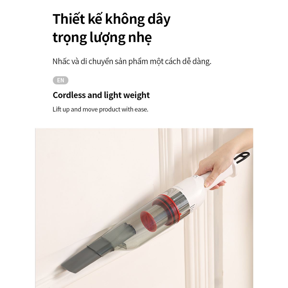 Khám phá máy hút bụi không dây Lock&Lock ENV136WHT giải pháp hoàn hảo cho mọi nhu cầu dọn dẹp nhanh chóng và hiệu quả trong không gian sống hiện đại. Với thiết kế nhỏ gọn, tinh tế cùng khả năng hút bụi mạnh mẽ, chiếc máy này hứa hẹn sẽ trở thành trợ thủ đắc lực, giúp bạn giữ cho ngôi nhà luôn sạch sẽ, thoáng đãng một cách dễ dàng.
