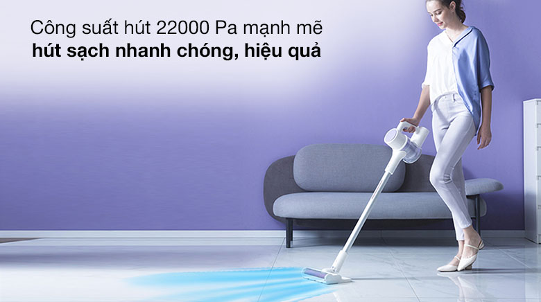 Máy hút bụi có công suất hút 22000 Pa mạnh mẽ với tốc độ hút 120000 vòng/phút, hút sạch bụi bẩn