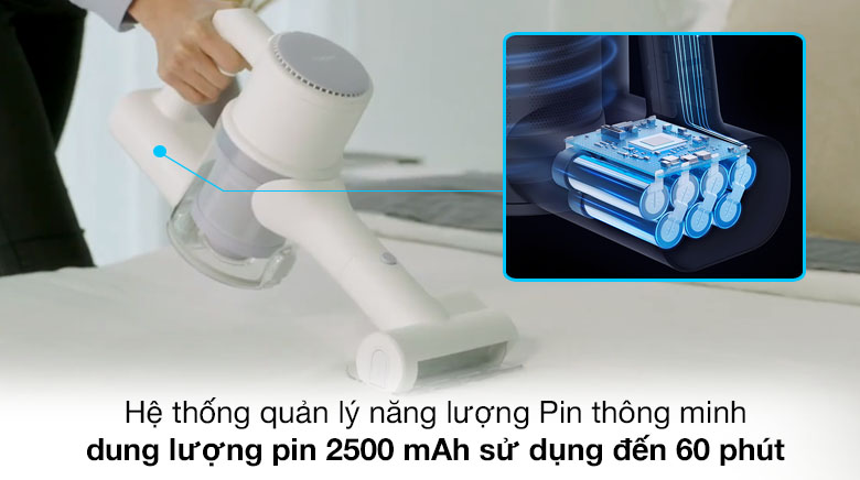 • Dung lượng pin 2500 mAH sử dụng đến 60 phút, tiện lợi cho quá trình vệ sinh nhà cửa.