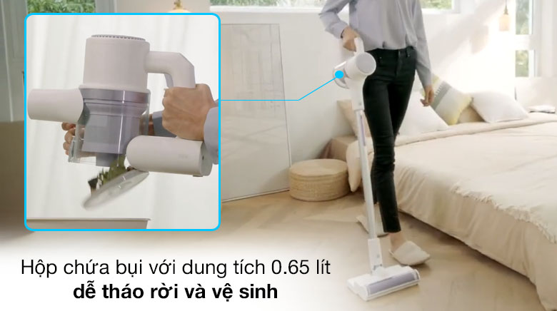 Dung tích hộp chứa bụi 0.65 lít chứa nhiều bụi bẩn, dễ tháo lắp và làm sạch
