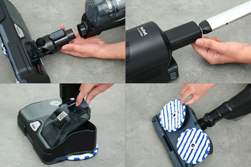 Máy hút bụi lau nhà Tefal X-Combo GF3039KO với ngăn chứa bụi và chứa nước riêng biệt, làm sạch hiệu quả cùng công nghệ Aerospin giúp đánh bật vết bẩn khô hiệu quả. Hơn nữa, sản phẩm này có thể vừa hút bụi, vừa lau sàn cùng một lúc, tiết kiệm thời gian khi dọn dẹp nhà cửa.
