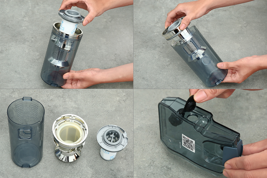 - Hộp chứa bụi có dung tích 0.55 lít và hộp chứa nước có dung tích 0.25 lít. Trong đó với hộp chứa nước, bạn có thể cho thêm nước lau sàn (nếu cần) để đáp ứng nhu cầu làm sạch hiệu quả hơn.