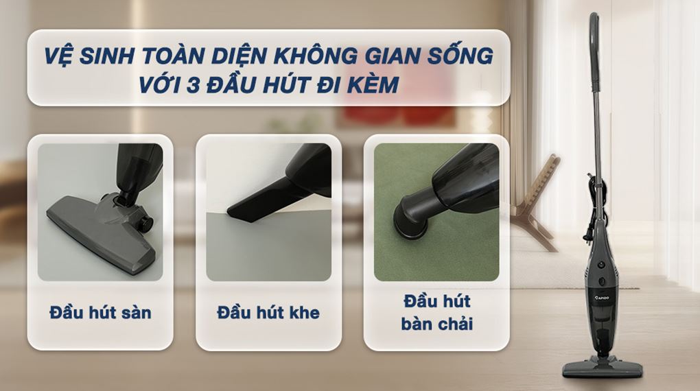Việc tích hợp nhiều đầu hút giúp máy trở thành công cụ đa năng, đáp ứng tốt các nhu cầu vệ sinh trong gia đình từ phòng khách, phòng ngủ đến xe hơi.