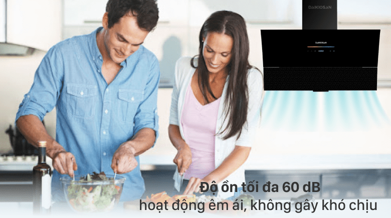 Máy hút mùi áp tường Daikiosan DKH-000003 hoạt động với độ ồn 60 dB tương đương với âm thanh khi giao tiếp thông thường, thoải mái khi dùng và không gây khó chịu.