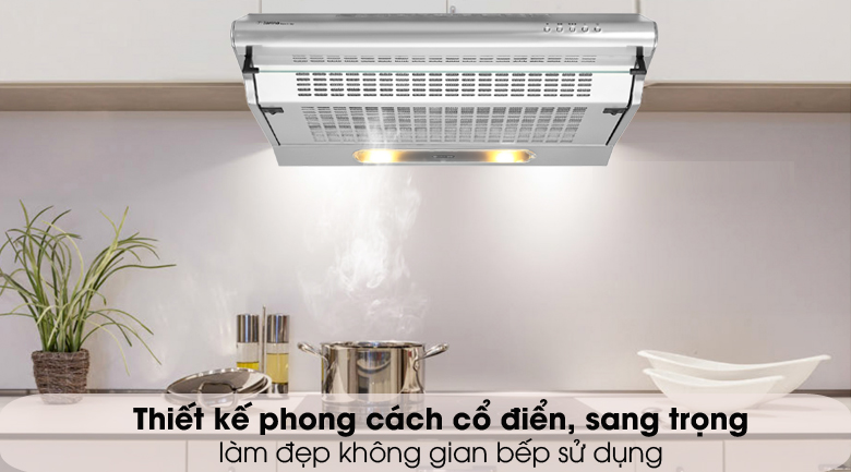 Máy có thể hút đẩy trực tiếp với đường ống thoát khí đường kính 12 cm. Ngoài ra còn hỗ trợ chế độ hút thải tuần hoàn thông qua bộ lọc than hoạt tính (kèm theo khi mua máy) để bạn dễ dàng lựa chọn tùy theo từng không gian bếp khác nhau.