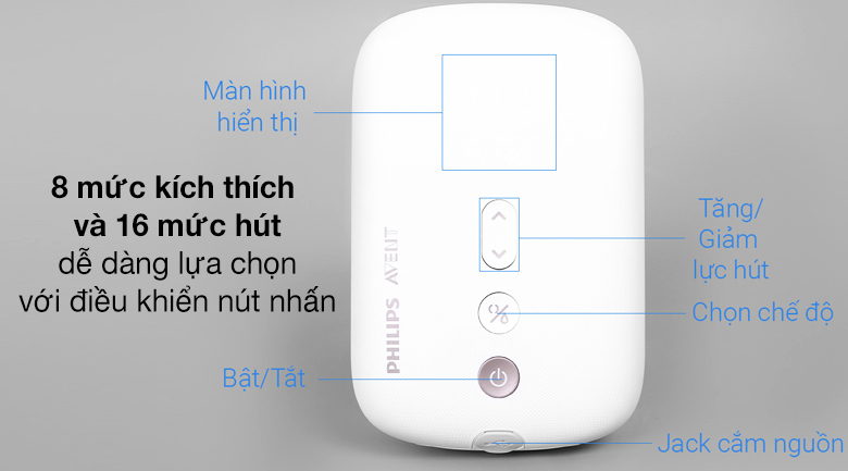 Máy hút sữa dễ dàng tùy chỉnh cài đặt với 8 mức kích thích và 16 mức hút