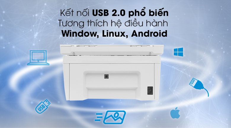 Máy in HP còn hỗ trợ bạn kết nối qua cổng USB 2.0 vô cùng tiện lợi tương thích tốt với hệ điều hành Windows, Android giúp bạn có thể thao tác in tài liệu thông tin một cách dễ dàng nhanh chóng. Ngoài ra, với bộ nhớ tới 32 MB giúp máy in Copy này lưu trước được nhiều lệnh hơn và tăng tốc độ in lên.