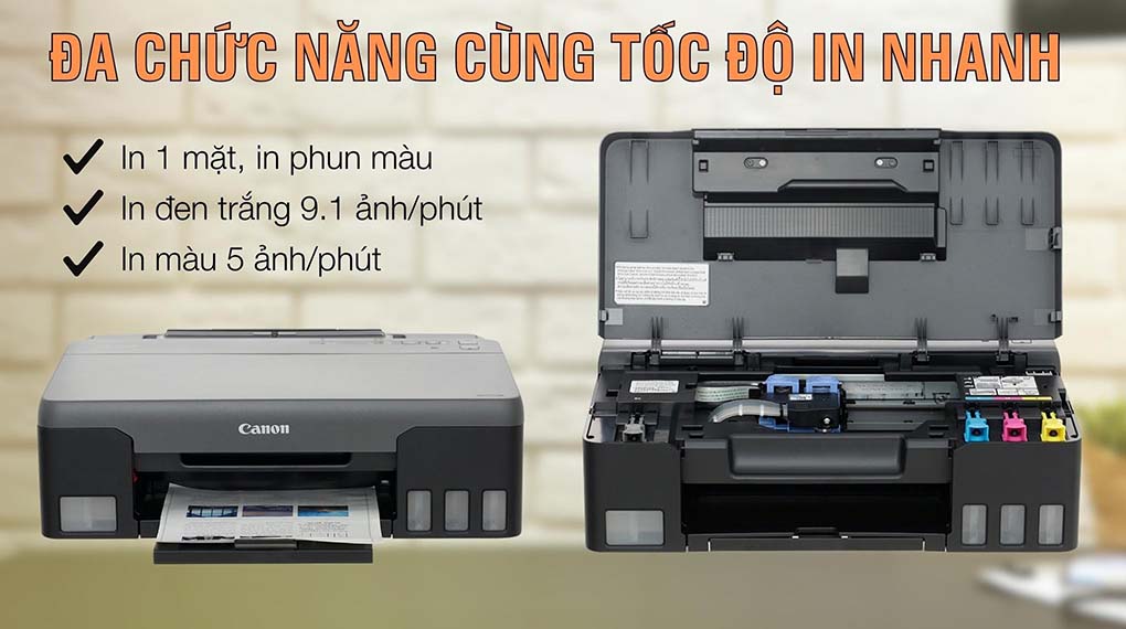 Với tốc độ in 9.1 ảnh/phút (đen trắng)5 ảnh/phút (màu), PIXMA G1020 đem lại trải nghiệm in ấn nhanh chóng và hiệu quả. Bạn không cần chờ đợi lâu để có được bản in hoàn chỉnh, đây sẽ là sự trợ giúp tuyệt vời cho quá trình thuyết trình, chuẩn bị tài liệu, hợp đồng trong thời gian ngắn.