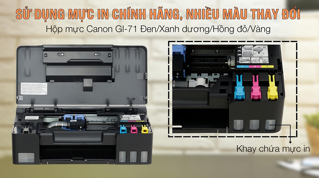 Sản phẩm sử dụng loại mực in chính hãng GI-71, bao gồm đầy đủ các màu cần thiết như Cyan, Magenta, YellowPigment Black. Máy in Canon PIXMA G1020 là một lựa chọn lý tưởng để đảm bảo rằng mọi bản in của bạn không chỉ được tái hiện một cách chân thực, mà còn giữ được độ bền và đẹp qua thời gian.