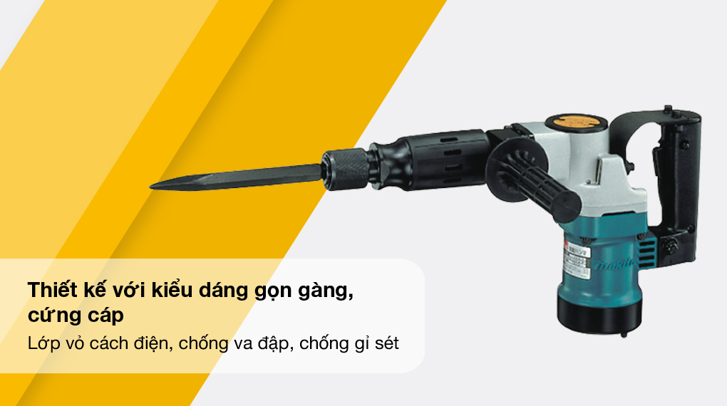 - Máy đục bê tông Makita được trang bị tính năng cách điện kép khiến sản phẩm đảm bảo an toàn tuyệt đối.