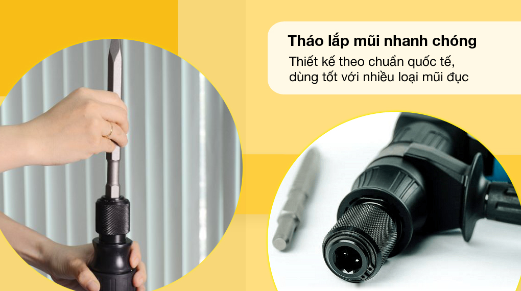 - Kích thước theo tiêu chuẩn quốc tế phù hợp với nhiều loại mũi đục.