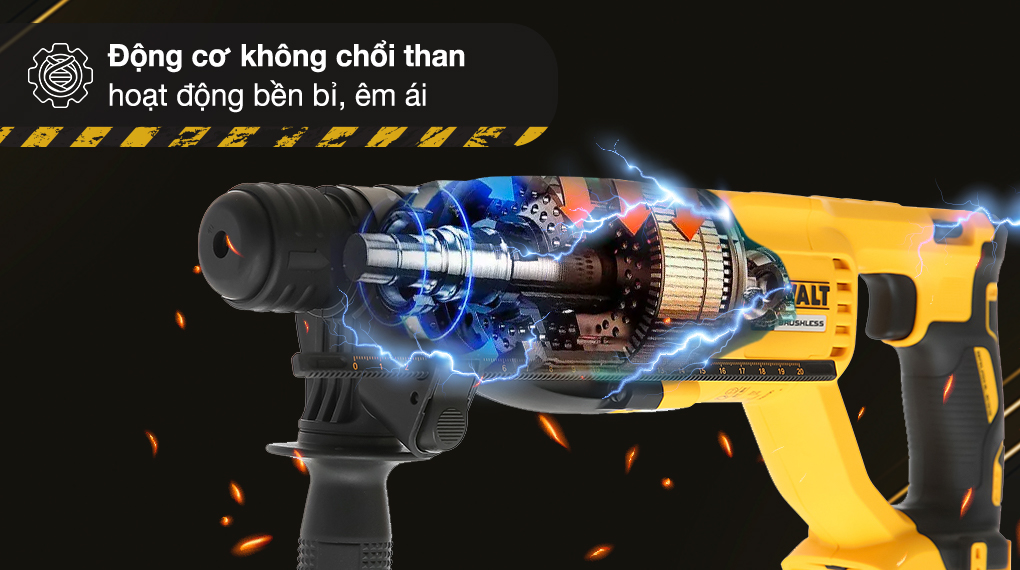 - Nhờ sử dụng động cơ không chổi than, máy khoan Dewalt đạt hiệu suất hoạt động mạnh mẽ, vận hành ổn định và mang lại khả năng tiết kiệm điện tối ưu.