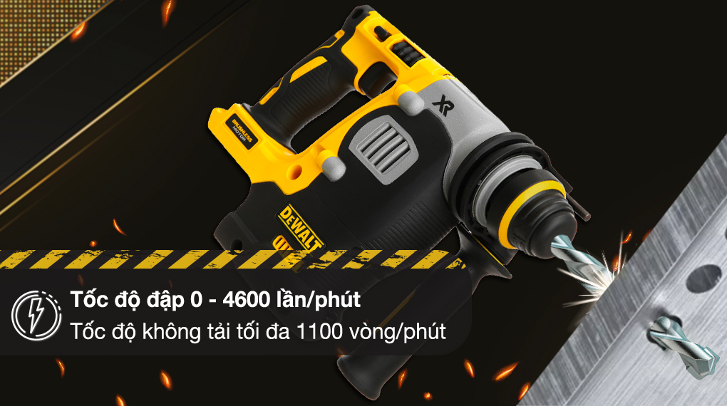- Cho tốc độ khoan nhanh mà không tốn nhiều sức lực của bạn với tốc độ không tải tối đa 1100 vòng/phút, tốc độ đập mạnh mẽ 0 - 4600 lần/phút.