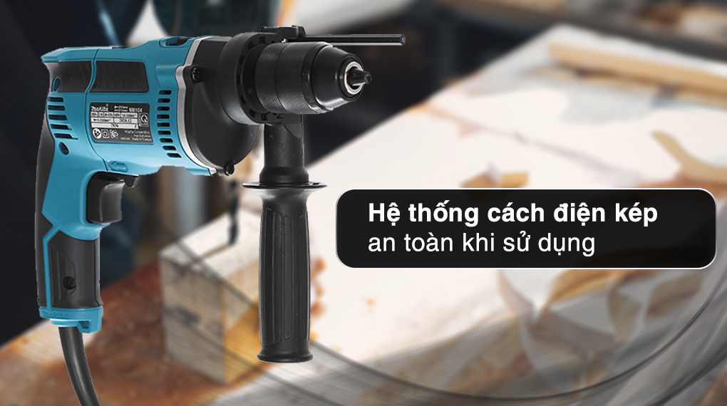 Nhờ trang bị hệ thống cách điện kép, người dùng có thể an tâm khi sử dụng máy khoan búa Makita này trong suốt quá trình khoan.