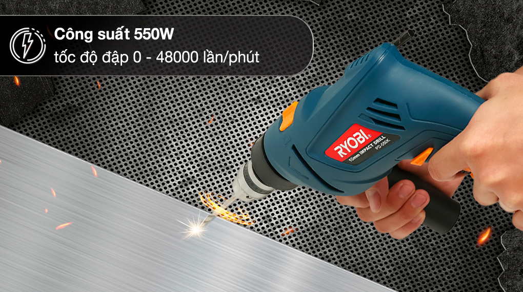 - Máy khoan động lực này có công suất 550W và tốc độ đập 48000 lần/phút giúp làm việc nhanh chóng, tăng năng suất công việc.