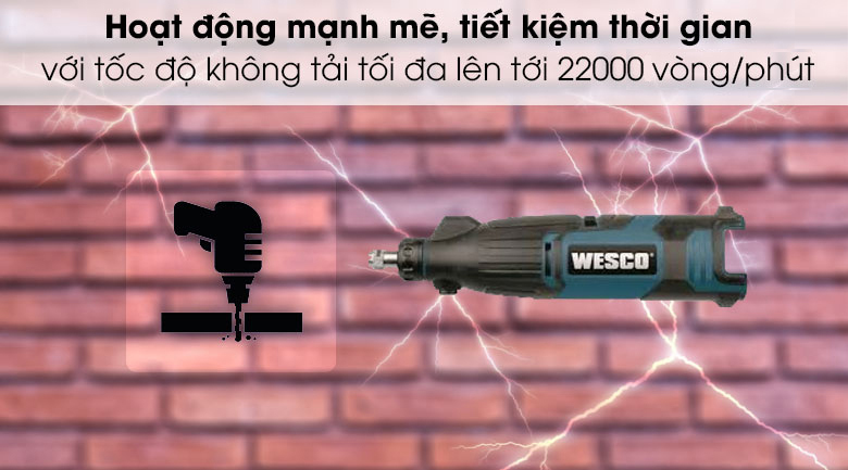 Máy khoan cầm tay Wesco sở hữu tốc độ không tải lên tới 22000 vòng/phút, mang lại khả năng hoạt động mạnh mẽ trên các bề mặt, khoan một cách linh hoạt, nhanh chóng và dễ dàng hơn rất nhiều, giúp tiết kiệm thời gian một cách tối ưu nhất.