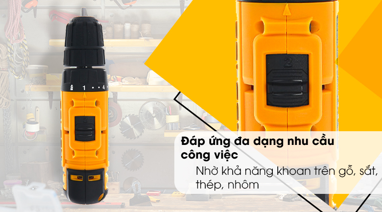 Máy khoan có thể đáp ứng được đa dạng nhu cầu công việc như khoan trên gỗ, nhôm, sắt, thép với đường kính khoan tối đa 10 mm phù hợp mang đến các công trình nhỏ hay sửa chữa trong gia đình. Cùng với đó là đầu cặp 10mm giúp cố định chắc chắn các loại mũi khoan.