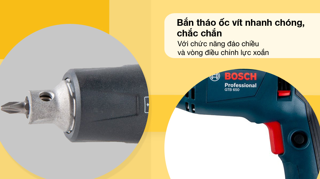 Tóm lại, với máy vặn vít dùng điện Bosch GTB 650 650W, việc bắt mở vít trên các bề mặt trở nên dễ dàng, nhanh chóng, tiện lợi và đều đẹp hơn, gia tăng hiệu suất làm việc, đảm bảo tính thẩm mỹ trên bề mặt gia công.