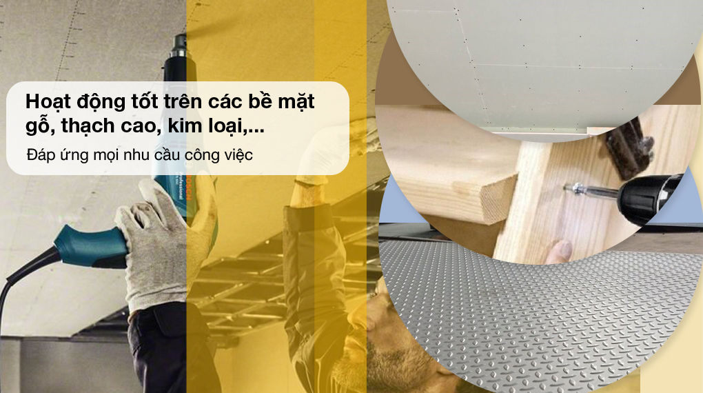 - Máy vặn vít Bosch dễ dàng bắt ốc vít trên các bề mặt gỗ, tường thạch cao, sắt, thép,…với đường ốc mịn, đều, đẹp.