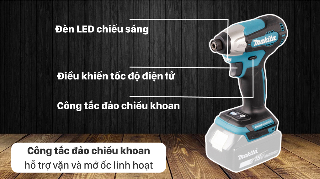 - Điều khiển tốc độ điện tử cho khả năng bắt ốc vít linh hoạt.