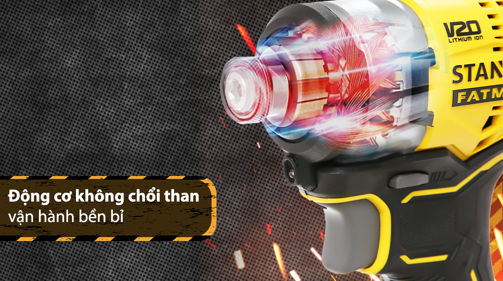 - Máy khoan Stanley sử dụng pin 20V để hoạt động, có thể đạt tốc độ không tải tối đa 2800 vòng/phút với lực xoắn tối đa 170 Nm, nhờ đó hỗ trợ thao tác siết ốc vít được nhanh chóng và chắc hơn.