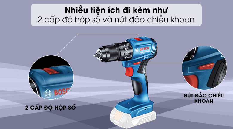 - Máy còn sở hữu 2 cấp độ hộp số điều chỉnh tốc độ khoan phù hợp với độ dài của vít hay độ sâu của mũi khoan, từ đó các đầu vít sẽ vừa khít, lỗ khoan có độ sâu chính xác.