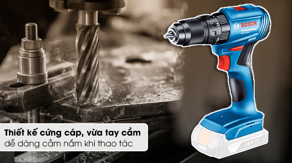 - Máy khoan vặn vít pin Bosch GSR 185-LI 18V (không kèm pin và sạc) thiết kế gọn nhẹ, chắc chắn, thao tác trong không gian hẹp dễ dàng.