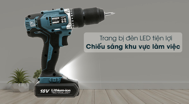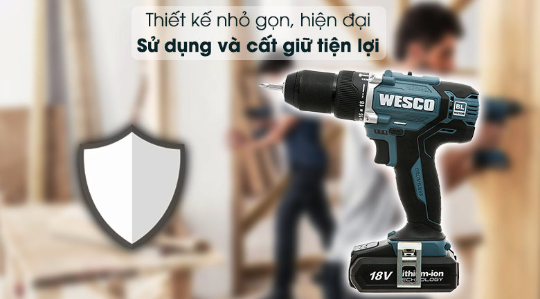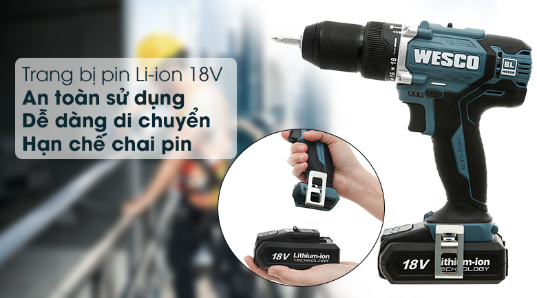 - Máy khoan Wesco sử dụng nguồn điện từ pin nên có độ an toàn cao, người dùng có thể thoải mái di chuyển đến bất kì đâu khi sử dụng, không lo tình trạng vướng dây điện.
