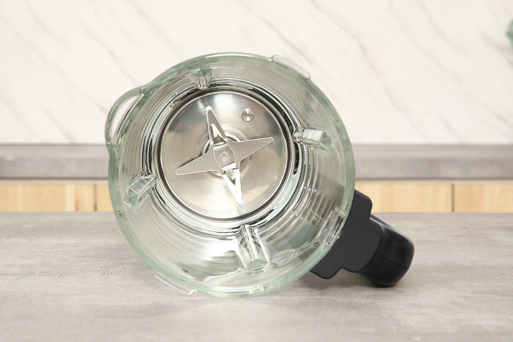 Lưỡi dao 6 cánh bằng thép không gỉ là điểm đáng chú ý. Thiết kế răng cưa tạo luồng xoáy mạnh và đều trong cối, giúp cuộn tròn nguyên liệu, xay mịn từ nhiều hướng. Nhờ đó, hỗn hợp đạt độ sánh mịn tốt, không bị tách nước hay còn lợn cợn. Với các loại hạt cứng, thiết bị vẫn xử lý được, nhưng có thể cần thêm chút thời gian để đạt độ mịn như mong muốn.