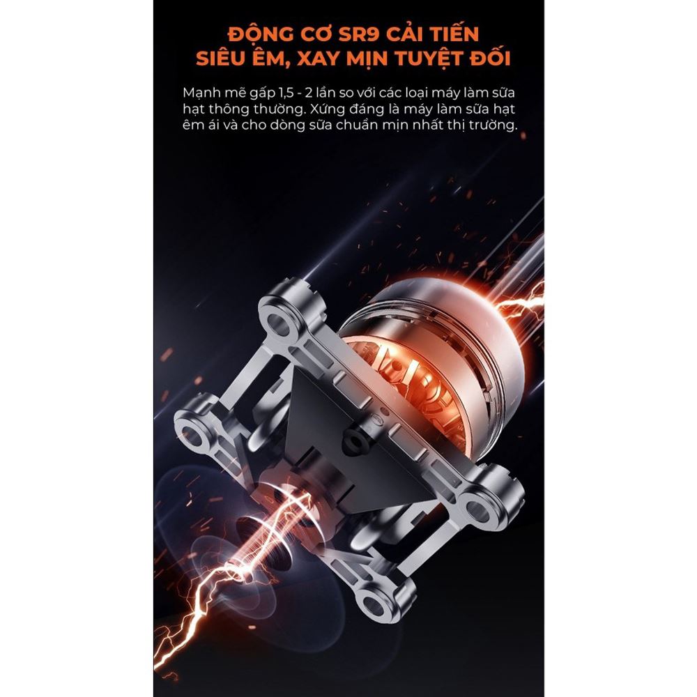 Unie V9S Pro sở hữu công suất mạnh mẽ với 800W khi nấu và 1000W khi xay, đảm bảo mọi nguyên liệu được xử lý nhanh chóng và hiệu quả. Điểm nổi bật là động cơ SR9 cải tiến, vận hành êm ái hơn nhưng lại mạnh mẽ gấp 1.5 - 2 lần so với các loại máy làm sữa hạt thông thường, dễ dàng xay nhuyễn cả đá và các loại hạt cứng nhất.
