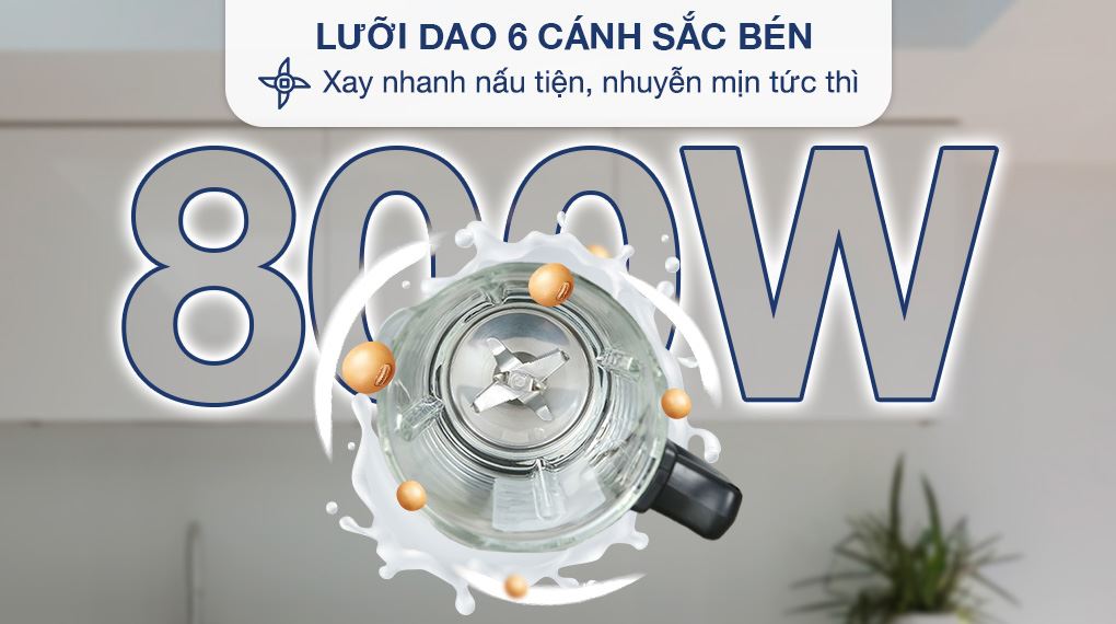 - Lưỡi dao 6 cánh có răng cưa bằng thép không gỉ an toàn, xay nhanh nhuyễn mịn.