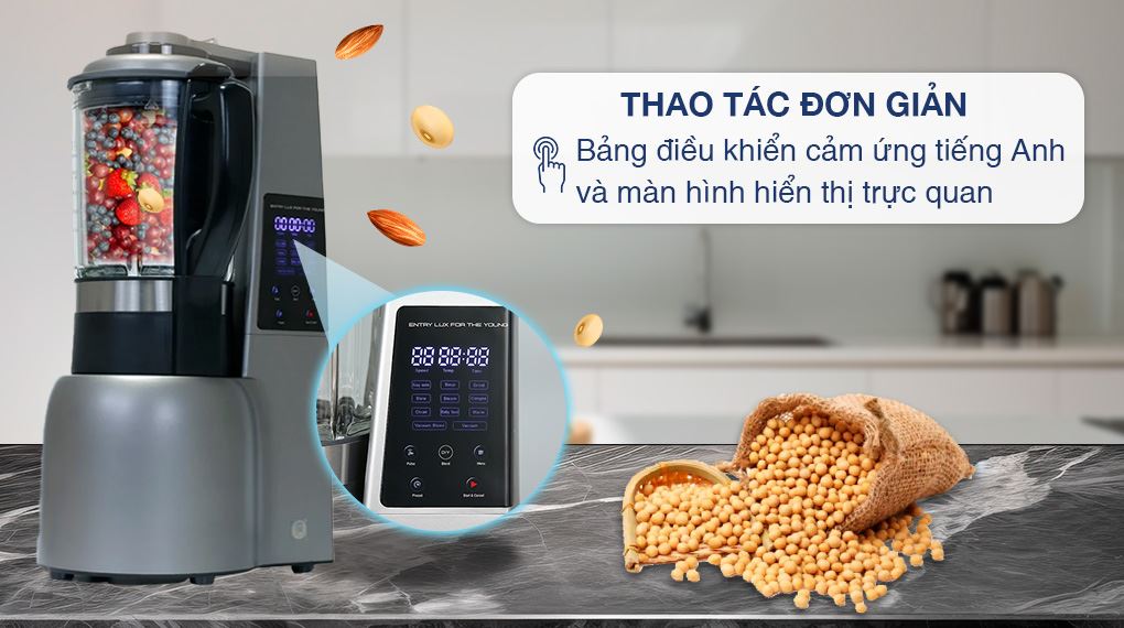- Trang bị 13 chương trình cài đặt sẵn: hút chân không, hút chân không và xay, cháo, hâm nóng, hấp, hầm, súp, sữa hạt, thức ăn trẻ em, xay khô, xay nhuyễn, xay và khuấy, vệ sinh.