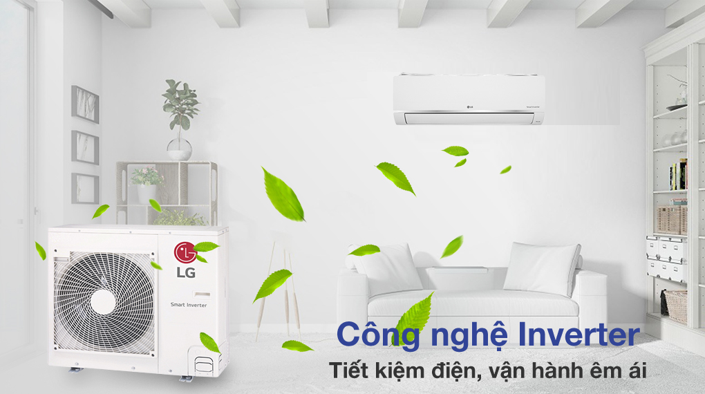 Máy lạnh LG này được trang bị công nghệ biến tần Inverter điều tiết nhiệt độ trong phòng thông qua rơ le cảm biến nhiệt độ, tối ưu ở mức độ nhiệt cài đặt để tiết kiệm điện năng, đồng thời giúp máy lạnh hoạt động êm ái và ổn định.