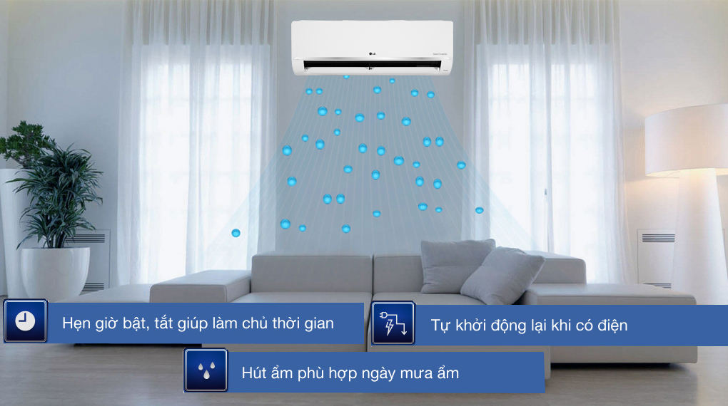 Chức năng hút ẩm sẽ hút bớt hơi ẩm có trong không khí, cân bằng độ ẩm phòng trong những ngày mưa hay độ ẩm không khí cao.