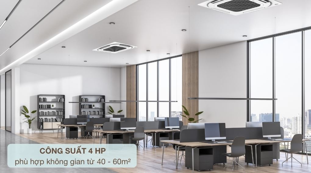 Với công suất 4 HP (36000 BTU), máy đáp ứng tốt nhu cầu làm mát cho các khu vực có diện tích lớn từ 40 - 60m² như sảnh, showroom, nhà hàng hoặc văn phòng đông người.