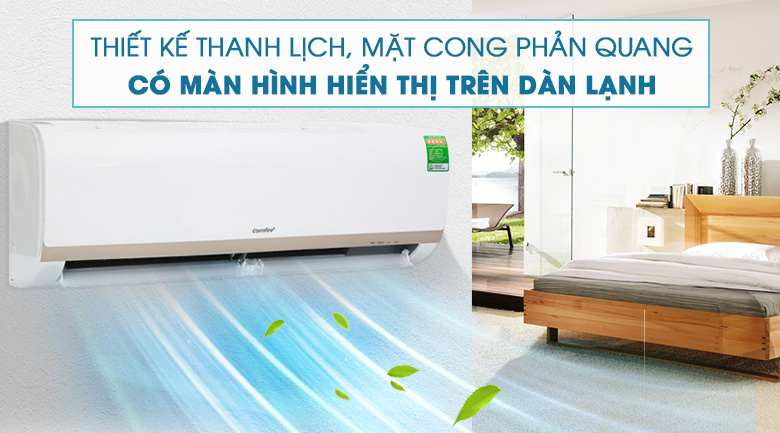 Máy lạnh Comfee Inverter 1 HP SIRIUS-9ED có kết cấu mặt cong đơn giản cùng với chất liệu phản quang bên ngoài, và màn hình hiển thị trên thân máy, hứa hẹn sẽ trở thành nội thất thanh lịch trong căn phòng bạn. Đồng thời, máy lạnh 1 HP này còn là sự lựa chọn hoàn hảo cho những căn phòng có diện tích dưới 15 mét vuông.