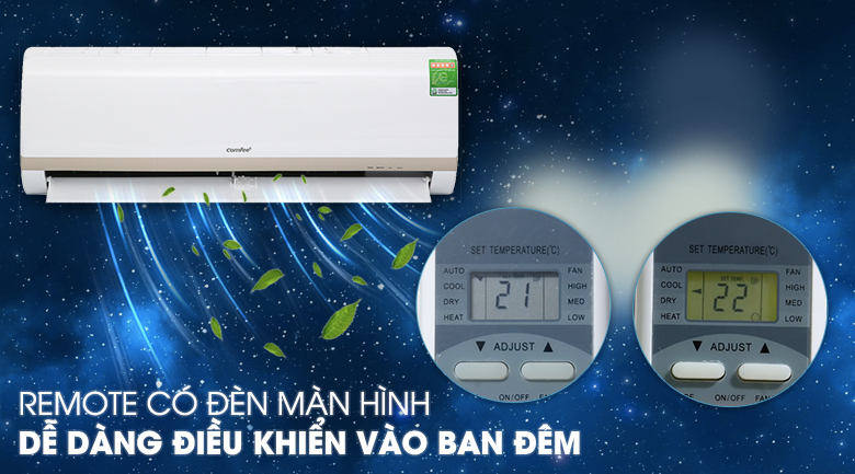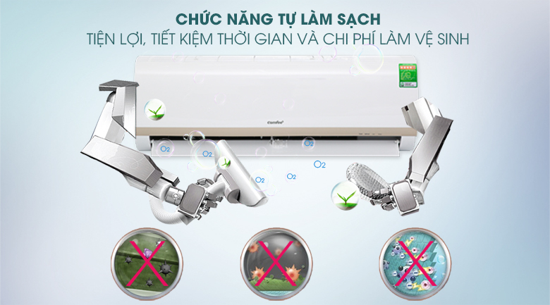 Máy lạnh Comfee này còn được tích hợp chức năng tự làm sạch, đảm bảo bộ trao đổi nhiệt của dàn lạnh không bị ẩm mốc, gây ra mùi hôi khó chịu. Bạn chỉ cần nhấn chọn nút self clean trên remote để chỉnh chức năng này.