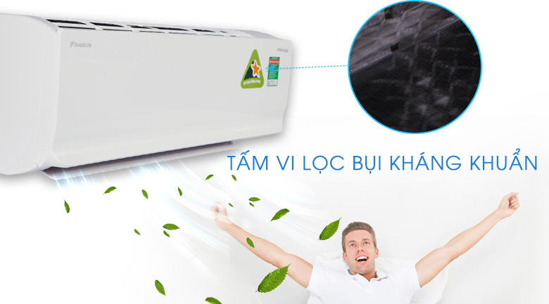 Với tấm vi lọc bụi, máy lạnh sẽ giúp loại bỏ các tác nhân gây hại cho đường hô hấp có trong không khí như: bụi bẩn, vi khuẩn, phấn hoa, lông thú cưng,... giúp bảo vệ sức khỏe cho cả gia đình bạn.
