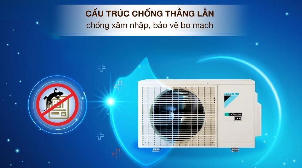 Dàn nóng được cải tiến với cấu trúc chống thằn lằn, góp phần hạn chế xâm nhập và bảo vệ bo mạch bên trong. Phần cánh tản nhiệt phủ lớp acrylic và lớp chống thấm nước, giúp tăng khả năng chống chịu trước mưa axit, hơi muối và các yếu tố ăn mòn, từ đó duy trì độ bền và hiệu suất hoạt động ổn định theo thời gian.
