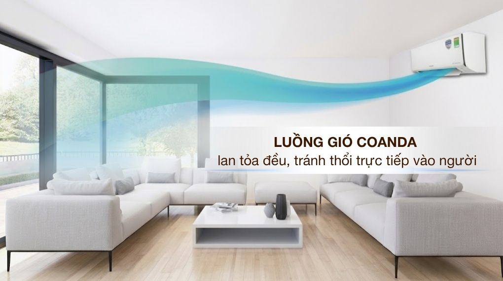Luồng gió Coanda cùng chế độ Comfort dẫn khí mát đi men theo trần rồi tỏa xuống nhẹ nhàng, hạn chế cảm giác lạnh buốt do gió thổi trực tiếp. Nhờ đó, không gian luôn giữ được sự dễ chịu ổn định, phù hợp với người lớn tuổi, trẻ nhỏ hoặc những ai nhạy cảm với luồng khí lạnh.