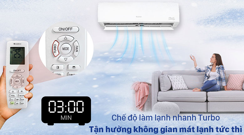Khi kích hoạt chế độ Turbo, bạn sẽ được tận hưởng ngay bầu không khí mát lạnh chỉ sau khoảng vài phút bật máy nhờ lưu lượng gió lớn thổi nhiều lần, thậm chí còn thổi xa được 6m.