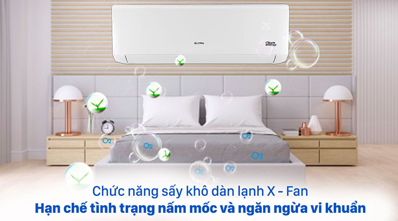 Với tính năng tự động sấy khô dàn lạnh X-Fan, sau khi tắt máy thì máy lạnh sẽ không ngừng hoạt động hẳn mà sẽ quạt thổi gió tiếp tục trong 2-3 phút để sấy khô dàn, ngăn ngừa vi khuẩn, nấm mốc phát triển, bảo vệ sức khoẻ người dùng.